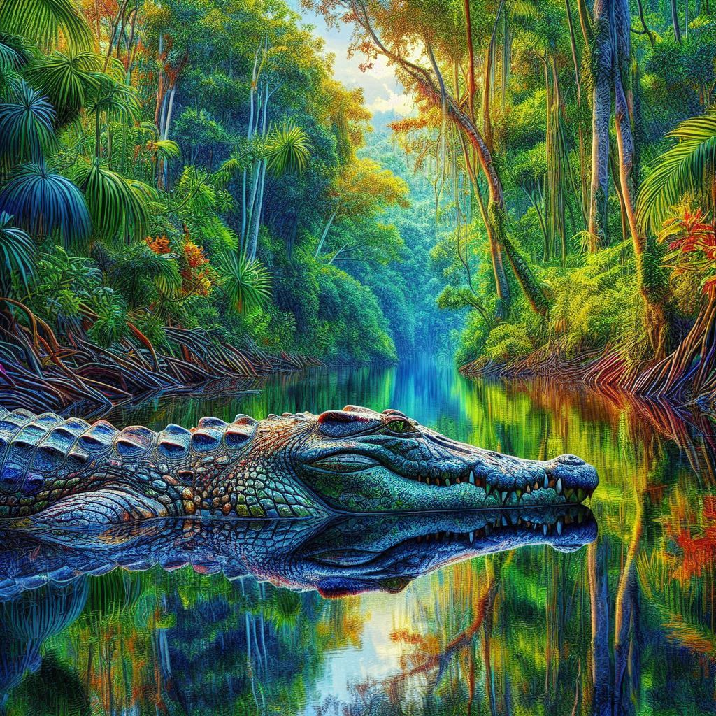 Just then, a huge crocodile – and two baby crocodiles – rose out of the water. Kirk yelped and Katrena screeched, both in a most horrid manner, and Roy and George yelled, “RUN!” at the same time.